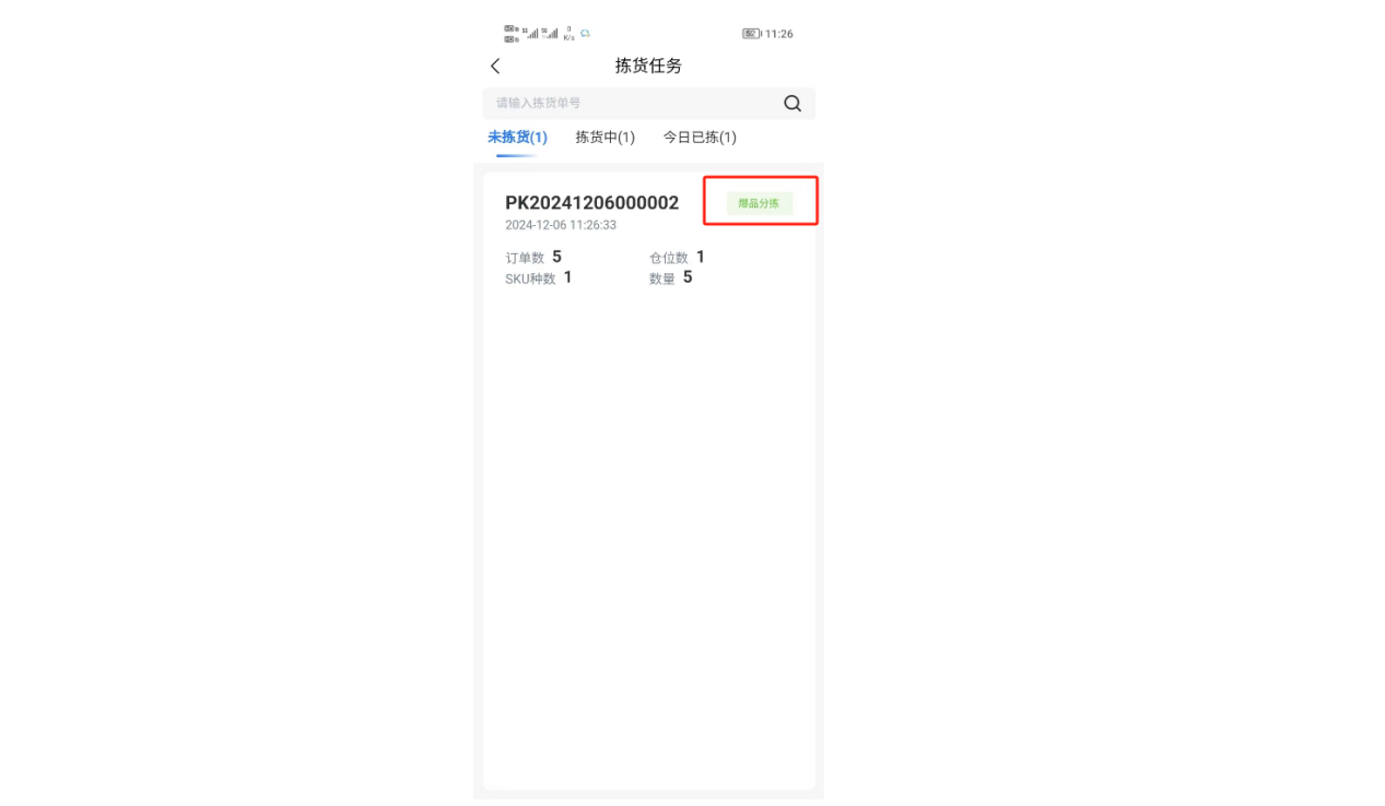 ④进入pda,在拣货任务中,可看到爆品分拣