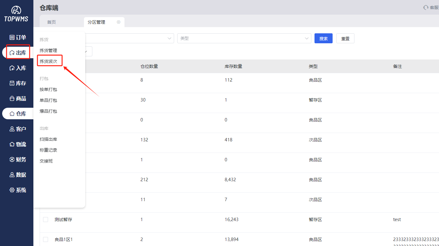 1、生成波次后,进入出库=>拣货波次