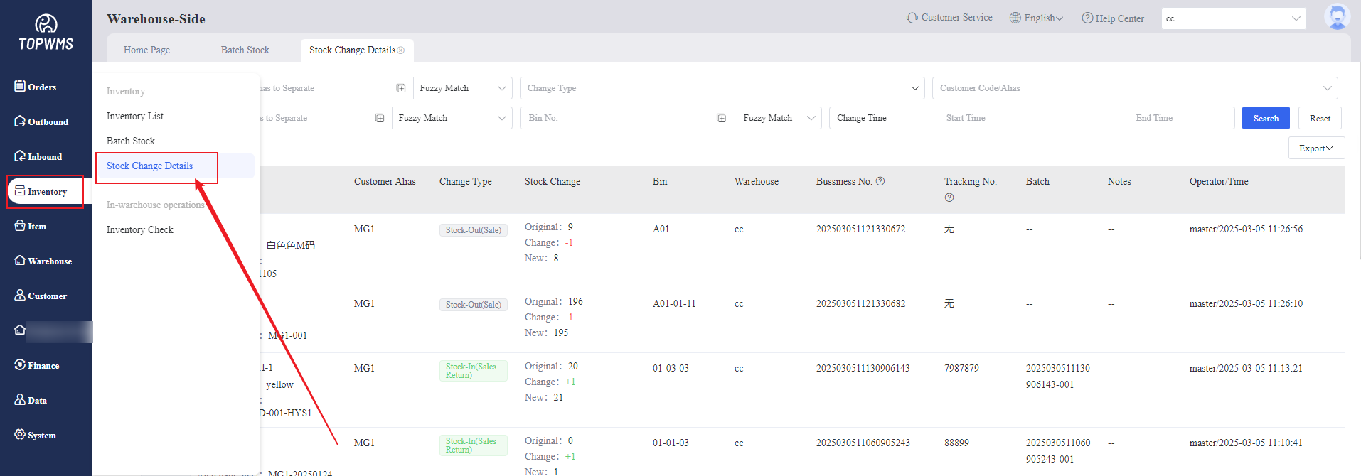 4. You can also go to [Inventory] > [Stock Change Details] to view each stock change detail.